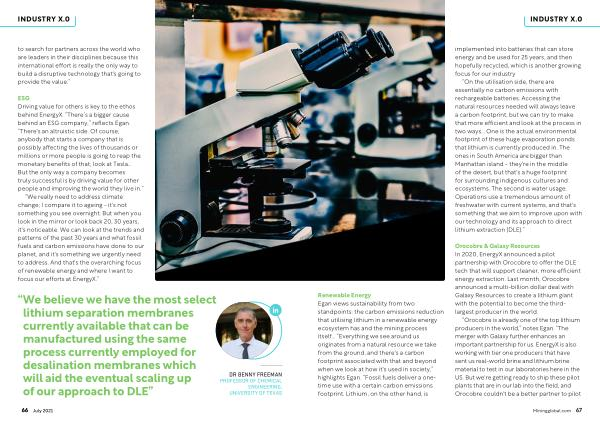 “ We believe we have the most select lithium separation membranes currently available that can be manufactured using the same process currently employed for desalination membranes which will aid the eventual scaling up of our approach to DLE ” DR BENNY FREEMAN PROFESSOR OF CHEMICAL