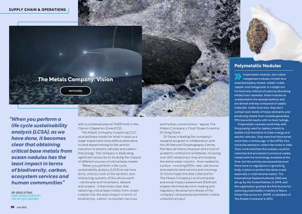 The Metals Company is exploring CCZsourced base metals for what it views as a lower impact and more ethical alternative to land-based mining for the world ’ s transition to electric vehicles and carbonfree energy . The company is dedicating significant resources to studying the impacts of different sources of critical base metals .