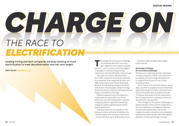 The Charge On Innovation Challenge – founded by BHP , Rio Tinto and Vale , together with multiple industry patrons – aims to solve one of the biggest challenges in decarbonising mining operations : the electrification of haul trucks .