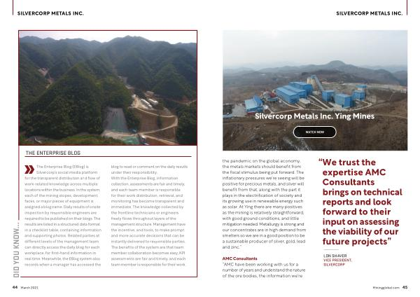 Silvercorp ’ s social media platform for the transparent distribution and flow of work-related knowledge across multiple locations within the business . In the system , each of the mining stopes , development faces , or major pieces of equipment is assigned a blog name . Daily results of onsite inspection by responsible engineers are required to be published on their blogs . The results are listed in a structured data format in a checklist table , containing information and supporting photos . Related parties at different levels of the management team can directly access the daily blog for each workplace , for first-hand information in real time . Meanwhile , the EBlog system also records when a manager has accessed the blog to read or comment on the daily results under their responsibility . With the Enterprise Blog , information collection , assessments are fair and timely , and each team member is responsible for their work distribution , retrieval , and monitoring has become transparent and immediate . The knowledge collected by the frontline technicians or engineers freely flows throughout layers of the management structure . Management have the incentive , and tools , to make prompt and more accurate decisions that can be instantly delivered to responsible parties . The benefits of the system are that team member collaboration becomes easy , KPI assessments are fair and timely , and each team member is responsible for their work .
