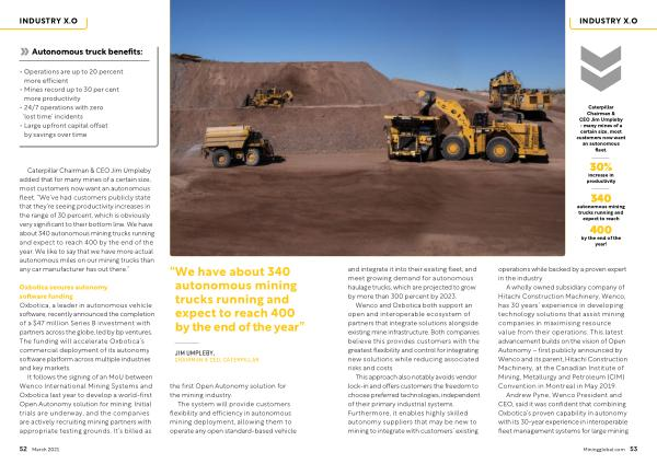 “ We have about 340 autonomous mining trucks running and expect to reach 400 by the end of the year ”