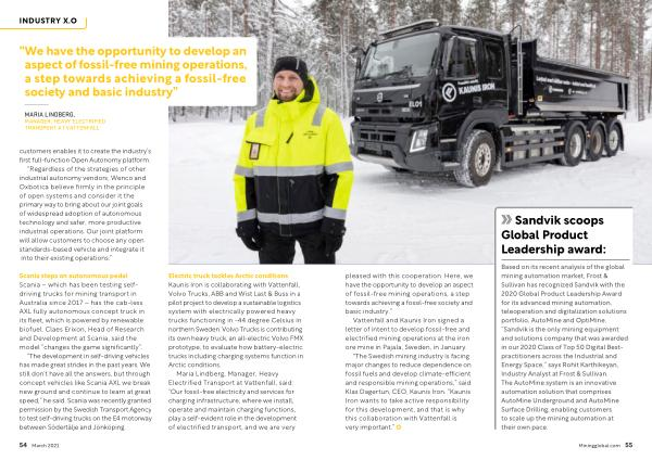 Sandvik scoops Global Product Leadership award : pleased with this cooperation . Here , we have the opportunity to develop an aspect of fossil-free mining operations , a step towards achieving a fossil-free society and basic industry .”