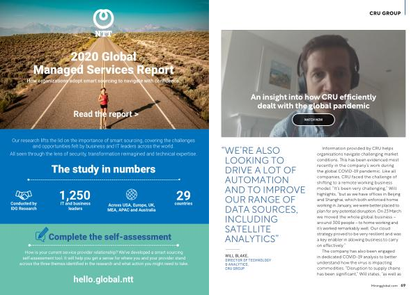 Information provided by CRU helps organisations navigate challenging market conditions . This has been evidenced most recently in the company ’ s work during the global COVID-19 pandemic . Like all companies , CRU faced the challenge of shifting to a remote working business model . “ It ’ s been very challenging ,” Will highlights , “ but as we have offices in Beijing and Shanghai , which both enforced home working in January , we were better placed to plan for any potential disruption . On 23 March we moved the whole global business – around 300 people – to home working and it ’ s worked remarkably well . Our cloud strategy proved to be very resilient and was a key enabler in allowing business to carry on effectively .”
