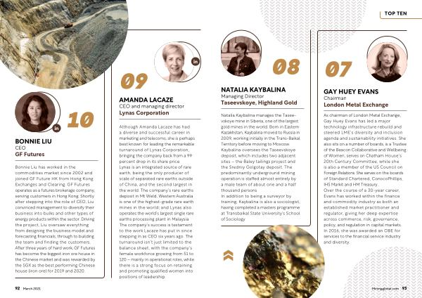 Amanda Lacaze has had a diverse and successful career in marketing and telecoms , she is perhaps best known for leading the remarkable turnaround of Lynas Corporation , bringing the company back from a 99 percent drop in its share price . Lynas is an integrated source of rare earth , being the only producer of scale of separated rare earths outside of China , and the second largest in the world . The company ’ s rare earths deposit in Mt Weld , Western Australia is one of the highest-grade rare earth mines in the world ; and Lynas also operates the world ’ s largest single rare earths processing plant in Malaysia . The company ’ s success is testament to the work Lacaze has put in since stepping in as CEO six years ago . The turnaround isn ’ t just limited to the balance sheet , with the company ’ s female workforce growing from 51 to 120 – mainly in operational roles , while there is a strong focus on retaining and promoting qualified women into positions of leadership .