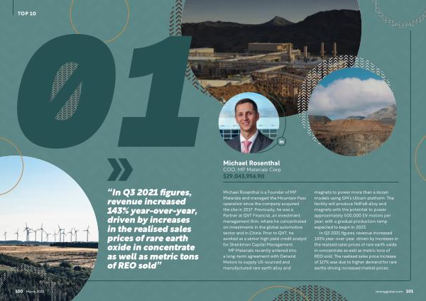 Michael Rosenthal is a Founder of MP Materials and managed the Mountain Pass operation since the company acquired the site in 2017 . Previously , he was a Partner at QVT Financial , an investment management firm , where he concentrated on investments in the global automotive sector and in China . Prior to QVT , he worked as a senior high yield credit analyst for Shenkman Capital Management .