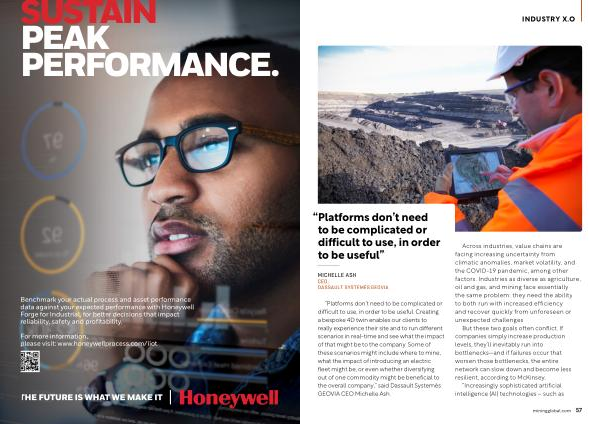“ Platforms don ’ t need to be complicated or difficult to use , in order to be useful . Creating a bespoke 4D twin enables our clients to really experience their site and to run different scenarios in real-time and see what the impact of that might be to the company . Some of these scenarios might include where to mine , what the impact of introducing an electric fleet might be , or even whether diversifying out of one commodity might be beneficial to the overall company ,” said Dassault Systemès GEOVIA CEO Michelle Ash .