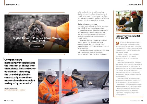 INDUSTRY X . O advanced analytics-based forecasting , digital-twin supply-chain simulations , and supply-chain optimisation tools – can help companies improve the resilience-efficiency balance of their value chains ,” it notes . Digital twin cyber warnings McKinsey partner Sebastian Reiter believes the COVID-19 pandemic has exposed vulnerabilities across the global value chain and pushed companies to prioritise risk management and operational resilience , against cyberattacks and other threats to supply chains .