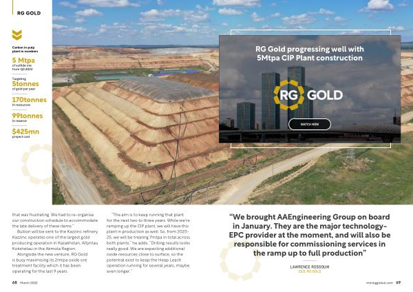 Gold progressing well with 5Mtpa CIP Plant construction
