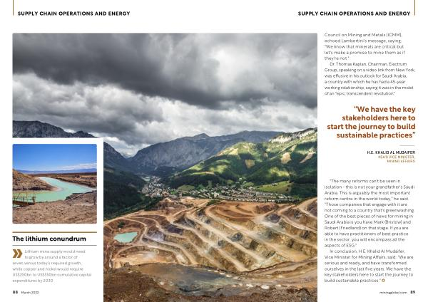 " The many reforms can ' t be seen in isolation - this is not your grandfather ' s Saudi Arabia . This is arguably the most important reform centre in the world today ," he said . " Those companies that engage with it are not coming to a country that ' s greenwashing . One of the best pieces of news for mining in Saudi Arabia is you have Mark ( Bristow ) and Robert ( Friedland ) on that stage . If you are able to have practitioners of best practice in the sector , you will encompass all the aspects of ESG ."