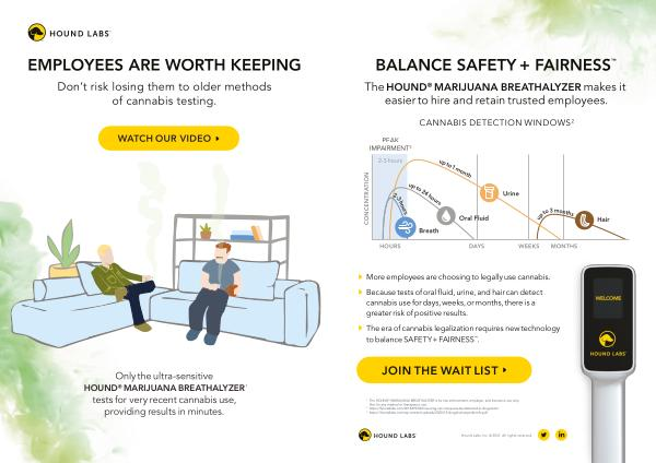 MARIJUANA BREATHALYZER tests for very recent cannabis use , providing results in minutes .
