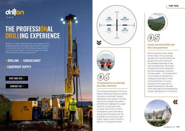 All the scenarios have clearly shown that in the upcoming decade , local communities are going to be at the centre of the strategic planning of new and existing mines . As a result , mining firms will be required – by their employees , investors , and the public – to include these communities in the decisionmaking process and to share profits with them . A recent example of this approach is AngloGold Ashanti ’ s life after mine planning at the Quebradona copper-gold project in Colombia .