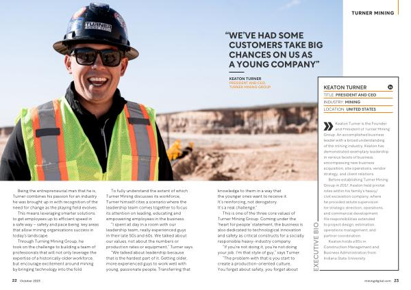 KEATON TURNER TITLE : PRESIDENT AND CEO INDUSTRY : MINING LOCATION : UNITED STATES knowledge to them in a way that the younger ones want to receive it . It ’ s reinforcing , not derogatory . It ’ s a real challenge .”