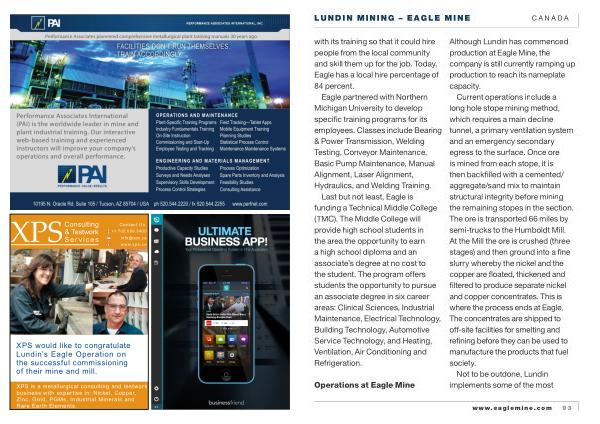 Current operations include a long hole stope mining method , which requires a main decline tunnel , a primary ventilation system and an emergency secondary egress to the surface . Once ore is mined from each stope , it is then backfilled with a cemented / aggregate / sand mix to maintain structural integrity before mining the remaining stopes in the section . The ore is transported 66 miles by semi-trucks to the Humboldt Mill . At the Mill the ore is crushed ( three stages ) and then ground into a fine slurry whereby the nickel and the copper are floated , thickened and filtered to produce separate nickel and copper concentrates . This is where the process ends at Eagle . The concentrates are shipped to off-site facilities for smelting and refining before they can be used to manufacture the products that fuel society .