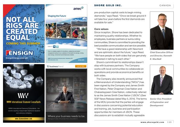 Shore Gold Inc . canada pre-production capital costs to begin mining diamonds ,” says Read . “ Once we break ground it will take four years before the first diamonds are available for sale .”