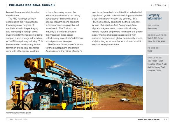 task force , have both identified that substantial population growth is key to building sustainable cities in the north west of the country . The PRC has recently applied to be the proponent for one of Australia ’ s first Designated Area Migration Agreements , potentially allowing Pilbara regional employers to smooth the peaky labour market challenges associated with resource projects and global commodity prices , whilst acting as an enabler for a vibrant small to medium enterprise sector .