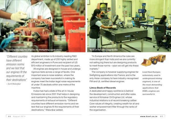 It also has had a state of the art in-house Emissions lab since 2001 that helps in designing and maintaining the products to the regulatory requirements of exhaust emissions . “ Different counties have different emission norms and we test that our engines fit the requirements of their destinations ,” Walunjkar added .