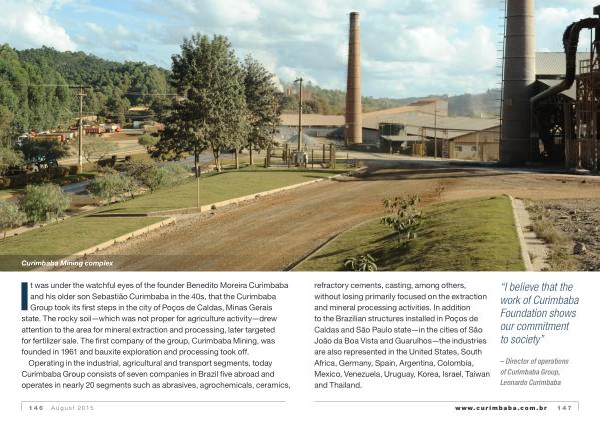 It was under the watchful eyes of the founder Benedito Moreira Curimbaba and his older son Sebastião Curimbaba in the 40s , that the Curimbaba Group took its first steps in the city of Poços de Caldas , Minas Gerais state . The rocky soil — which was not proper for agriculture activity — drew attention to the area for mineral extraction and processing , later targeted for fertilizer sale . The first company of the group , Curimbaba Mining , was founded in 1961 and bauxite exploration and processing took off .