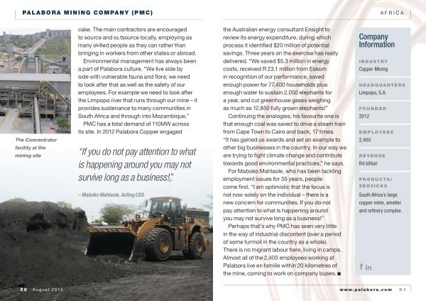 PMC has a total demand of 110MW across its site . In 2012 Palabora Copper engaged
