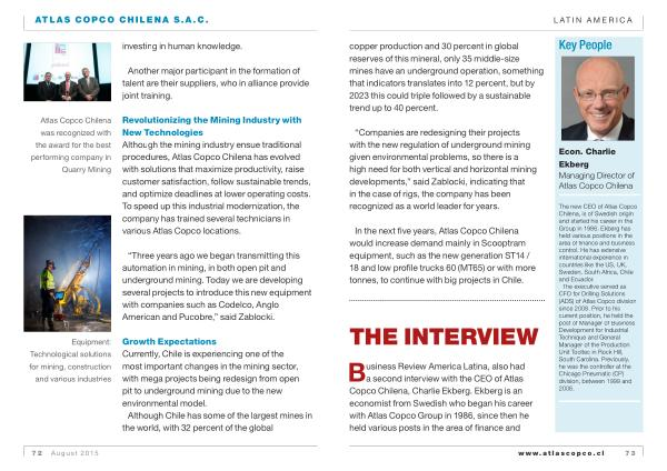 Atlas Copco Chilena was recognized with the award for the best performing company in