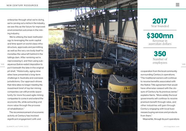 We ’ re utilising the best methodology to leveraging the sunk capital and time spent on world class infrastructure , approvals and permitting as well as the very ore body itself to monetise the value left behind in the tailings dam . After remining we ’ re reprocessing it , and then using subaqueous ( below water ) deposition to put it beneath the lake in the original pit shell . “ Historically , aging mine sites have presented a long-term challenge in Australia and overseas jurisdictions . Our approach shows that mine sites no longer meeting the investment brief of top tier mining companies can still provide opportunity for more focused agile mining companies to come in and extend the economic life , while extracting a lot more value through the process of rehabilitation .”