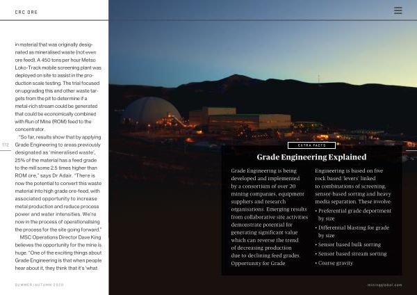 Grade Engineering is being developed and implemented by a consortium of over 20 mining companies , equipment suppliers and research organisations . Emerging results from collaborative site activities demonstrate potential for generating significant value which can reverse the trend of decreasing production due to declining feed grades . Opportunity for Grade