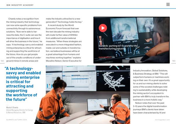 Industry Innovation , Global Solutions , & Business Strategy at IBM . “ This will outperform humans or machines working on their own . It ’ s a great opportunity for us and our mining clients to solve some of the societal challenges relating to sustainability while developing the mining sector ’ s ecosystem to partner with IBM to truly transform the business in a more holistic way .”