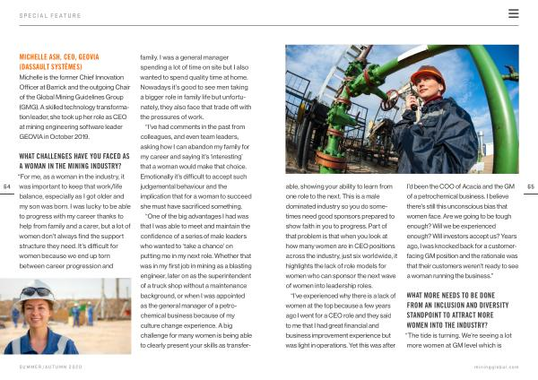 Michelle is the former Chief Innovation Officer at Barrick and the outgoing Chair of the Global Mining Guidelines Group ( GMG ). A skilled technology transformation leader , she took up her role as CEO at mining engineering software leader GEOVIA in October 2019 .
