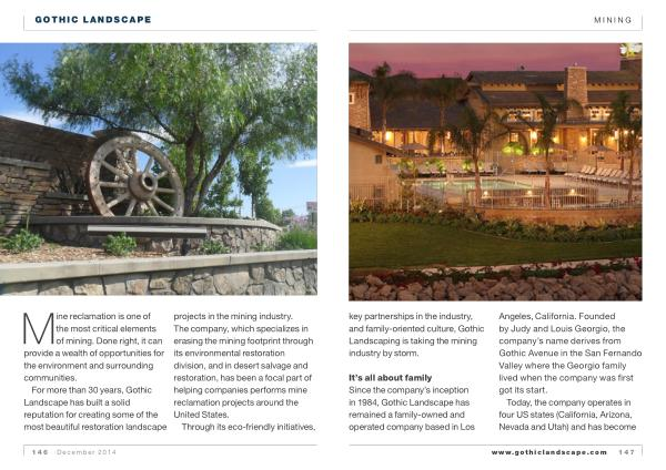 For more than 30 years , Gothic Landscape has built a solid reputation for creating some of the most beautiful restoration landscape projects in the mining industry . The company , which specializes in erasing the mining footprint through its environmental restoration division , and in desert salvage and restoration , has been a focal part of helping companies performs mine reclamation projects around the United States .
