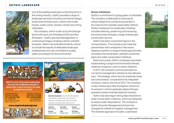 one of the leading landscape contracting firms in the mining industry . Gothic provides a range of landscape services including commercial design , production / infrastructure , custom and model homes , public works , erosion control and mining restoration .