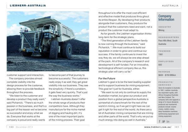 Liebherr-Australia doesn ’ t offer the whole range of products their competitors have . Although they manufacture for the niche market of digging and hauling dirt , it ’ s one of the most important parts of the mining process . Their goal