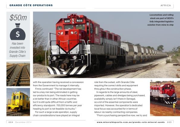 Finnis continued : “ The rail development has led to a key risk being eliminated in getting our products to port . The roads here may be a lot better than in other African countries but it is still quite difficult from a traffic and efficiency standpoint . 700,000 tonnes per year heading to port is not feasible via trucks .”