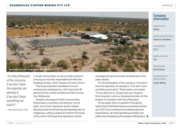 “ In five years ’ time I ’ m positive I ’ ll be able to report back that Khoemacau successfully started up in 2017 and continues to exceed production expectations , all while operating smoothly and safely and empowering the people of Botswana .”