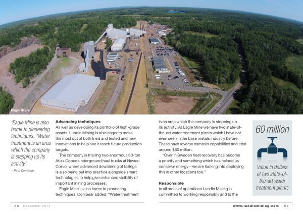 Mining is an area which the company is stepping up its activity . At Eagle Mine we have two state-ofthe-art water treatment plants which I have not even seen in the base metals industry before . These have reverse osmosis capabilities and cost around $ 60 million .
