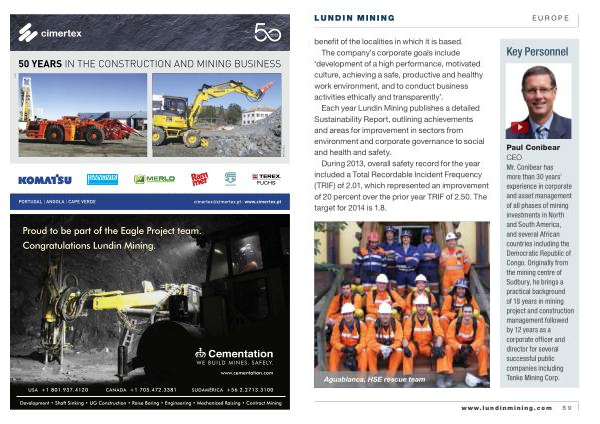 Paul Conibear CEO Mr . Conibear has more than 30 years ’ experience in corporate and asset management of all phases of mining investments in North and South America , and several African countries including the Democratic Republic of Congo . Originally from the mining centre of Sudbury , he brings a practical background of 18 years in mining project and construction management followed by 12 years as a corporate officer and director for several successful public companies including Tenke Mining Corp .