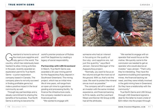 True North Gems and LNS Group through LNS Greenland signed a deal for the latter to invest a total of $ 34 million into the project through
