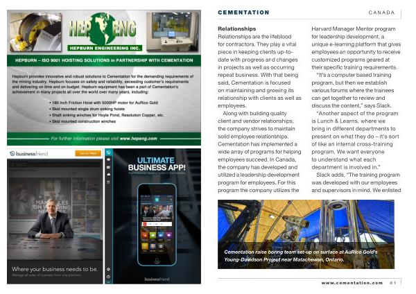 Along with building quality client and vendor relationships , the company strives to maintain solid employee relationships . Cementation has implemented a wide array of programs for helping employees succeed . In Canada , the company has developed and utilized a leadership development program for employees . For this program the company utilizes the