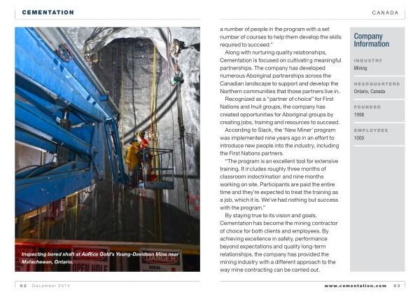 By staying true to its vision and goals , Cementation has become the mining contractor of choice for both clients and employees . By achieving excellence in safety , performance beyond expectations and quality long-term relationships , the company has provided the mining industry with a different approach to the way mine contracting can be carried out .