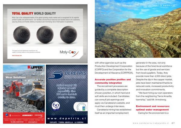 Candelaria mining has established itself as an important employment generator in the area , not only because of the hired local workforce but the use of goods and services from local suppliers . Today , they provide more than 4,000 direct jobs . Despite the dip in the copper market , jobs have been maintained thanks to reduced costs , increased productivity and innovation commitments .