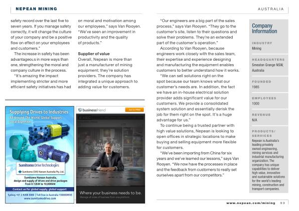 Supplier of value Overall , Nepean is more than just a manufacturer of mining equipment ; they ’ re solution providers . The company has integrated a unique approach to adding value for customers .
