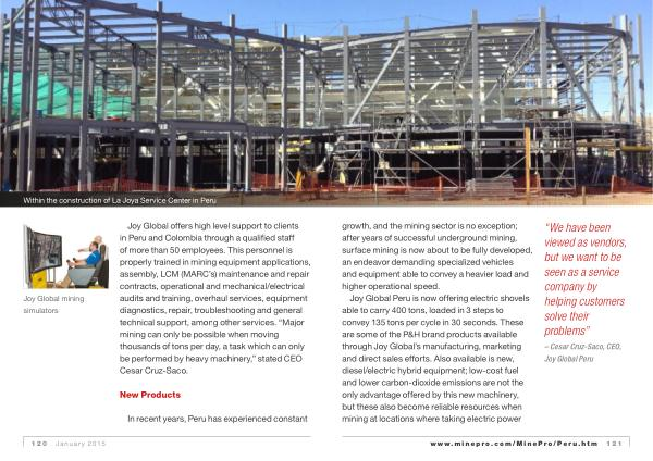 – Cesar Cruz-Saco , CEO , Joy Global Peru