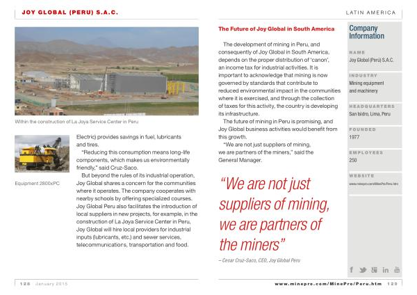 – Cesar Cruz-Saco , CEO , Joy Global Peru www . minepro . com / MinePro / Peru . htm 129