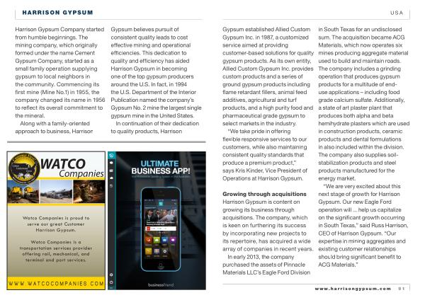 “ We are very excited about this next stage of growth for Harrison Gypsum . Our new Eagle Ford operation will ... help us capitalize on the significant growth occurring in South Texas ,” said Russ Harrison , CEO of Harrison Gypsum . “ Our expertise in mining aggregates and existing customer relationships should bring significant benefit to ACG Materials .”