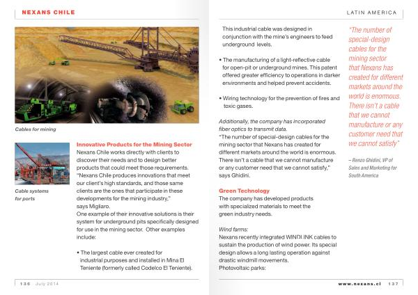 “ The number of special-design cables for the mining sector that Nexans has created for different markets around the world is enormous . There isn ’ t a cable that we cannot manufacture or any customer need that we cannot satisfy ”