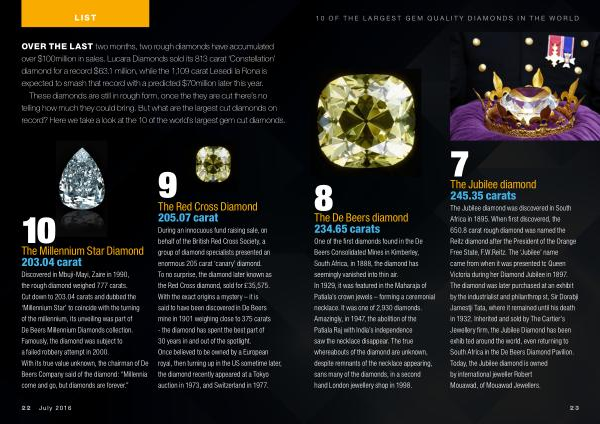 OVER THE LAST two months , two rough diamonds have accumulated over $ 100million in sales . Lucara Diamonds sold its 813 carat ‘ Constellation ’ diamond for a record $ 63.1 million , while the 1,109 carat Lesedi la Rona is expected to smash that record with a predicted $ 70million later this year .