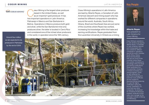 Alberto Reyes Vice-president to Latin America for Coeur Mining www . coeur . com