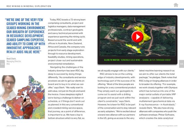 Navigating the challenges of the industry downturn has seen RSC dig deep to succeed by doing things differently . “ As consultants and service providers we aim to get our clients on board and to buy in to what we can offer ,” says Sterk . “ We really want to add value , not just do the job and send the invoice . I have sleepless nights if we ’ re facing a challenge to deliver on schedule , or if things don ’ t work out as planned . In this very conventional and crowded mining-service space , that journey , as a point of difference , is important to us . We have a top to bottom structure which is very flat , so