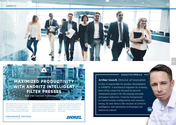 Arthur Gooch , Director of Innovation Arthur is responsible for product development at ANDRITZ . A mechanical engineer by training , most of his career has focused on process automation projects for the mining and pulp and paper industries . From his background in control system configuration and commissioning , he now directs the creation of artificial intelligence and simulation technologies for industrial control .
