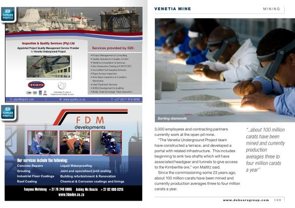 Appointed Project Quality Management Service Provider for Venetia Underground Project