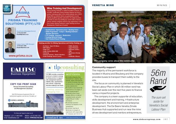 The company is a keen supporter of education , skills development and training , infrastructure development , the environment and enterprise development . The De Beers Venetia Zimele Business Hub supported and run near the mine drives development and mentors entrepreneurs .