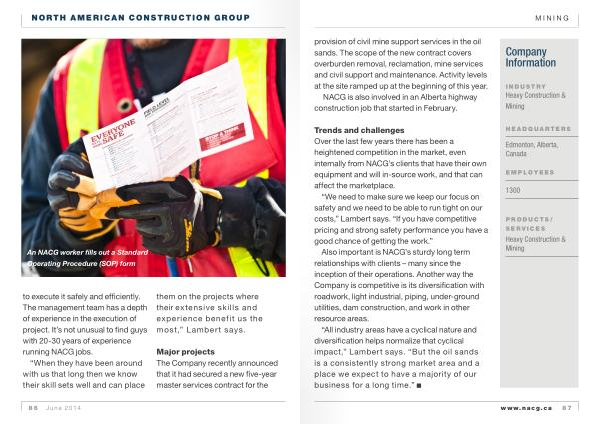 Mining provision of civil mine support services in the oil sands . The scope of the new contract covers overburden removal , reclamation , mine services and civil support and maintenance . Activity levels at the site ramped up at the beginning of this year . NACG is also involved in an Alberta highway construction job that started in February .